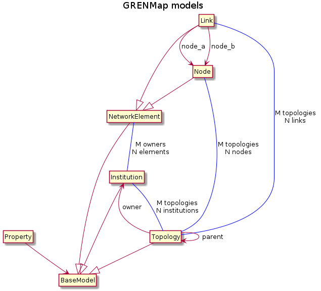 Topologies are in M-to-N relationships with nodes, links and institutions. Any instance of these entities that is associated to a single topology disappears if that topology is deleted by an administrator.